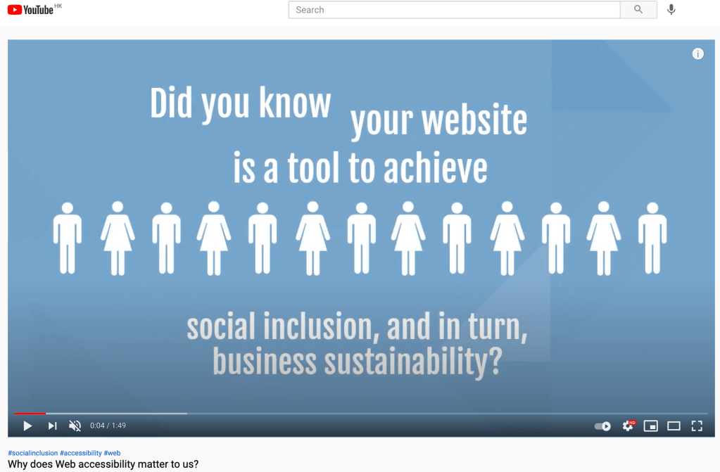 The disabled are the disadvantaged group that our society and businesses need to care about because of social responsibility and legal responsibility (The Disability Discrimination Ordinance (Cap 487)). According to the Office of the Government Chief Information Officer of HKSAR, all people, irrespective of age, race, education, or disability, shall have equal access to all the information and services in websites or mobile applications. COVID-19 crisis worsens connectivity as the disabled person may have difficulties in moving around to get the resources and services.