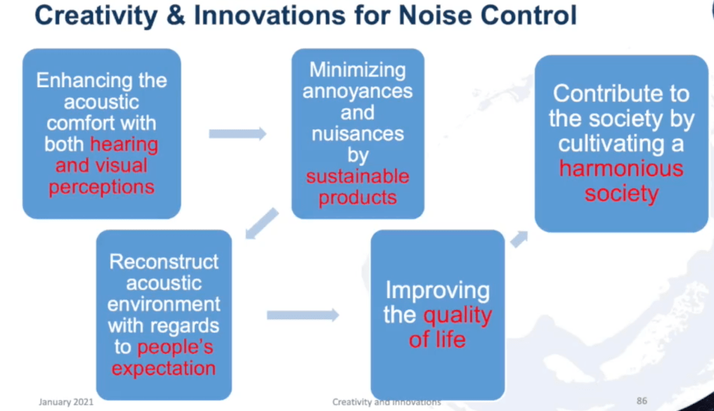 The visible acoustic measures work like: when we dress up and clean, people will feel more comfortable seeing us and even accept us as the social counterpart. Visual sensation contributes over fifty percent of human sensory input. The innovative concept of visual quietness raises the awareness of soundscape and the building environment achieving perceived acoustic comfort. You may experience an aircraft noise running over your head. If the aircraft is flying over low, you may feel the plane is noisier. In the setting of ornamented noise barrier would audibly and visually give you a quiet environment.